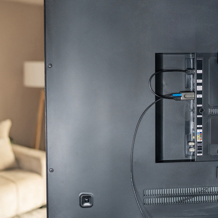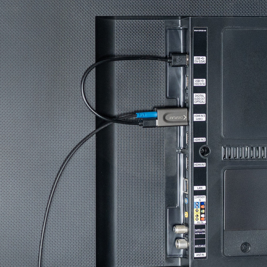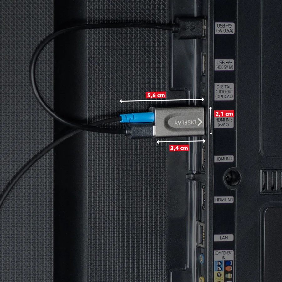 Strom per USB am Display-Ende nötig: Der Display-Konverter braucht USB-Strom (z. B. TV-USB oder USB-Netzteil). Source wird über HDMI versorgt, optional zusätzlich per USB – insbesondere für CEC-Komfortfunktionen.