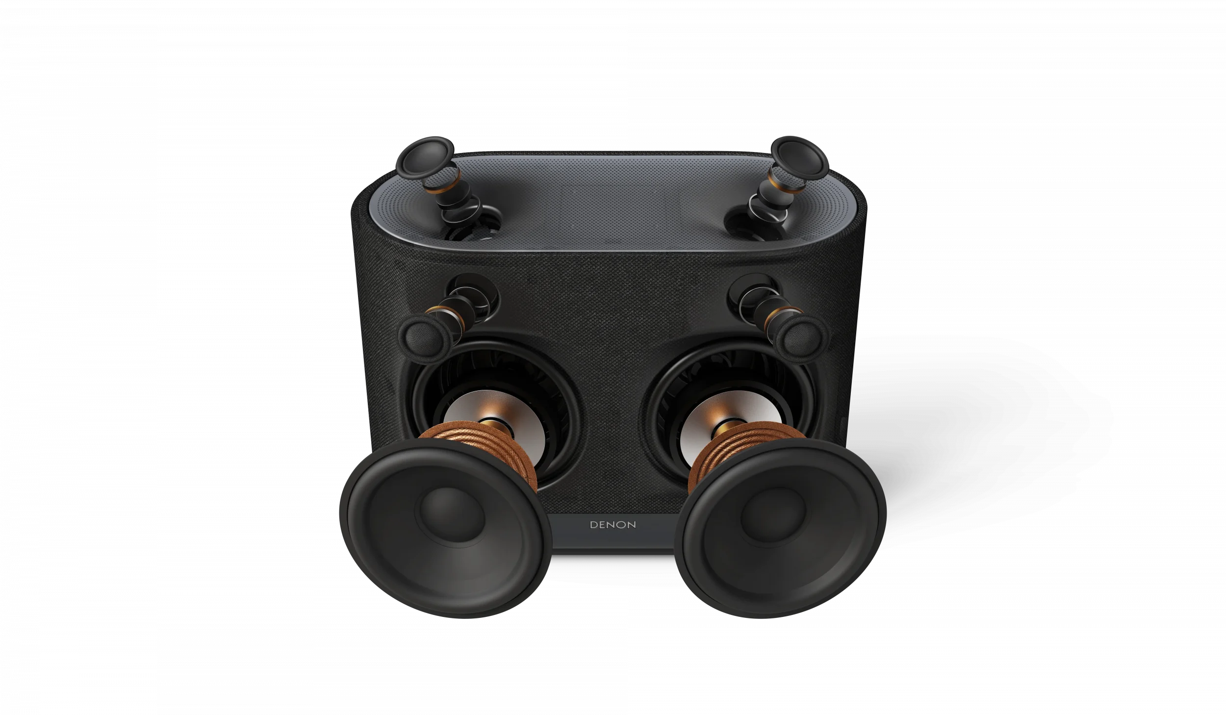 Der Denon Home 400 in Schwarz mit einzeln dargestellten Lautsprechern